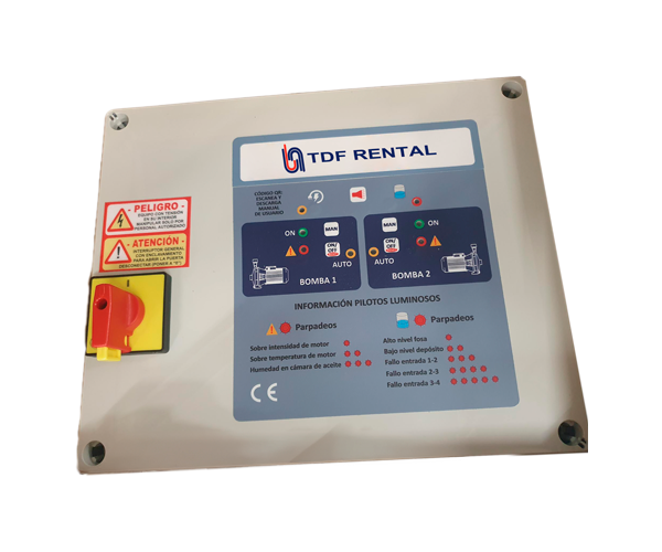 Los cuadros variadores de TDF Rental son paneles de control con variador de frecuencia, diseñados para optimizar el rendimiento de bombas en aplicaciones industriales. Disponibles para potencias de 7,5 kW, 15 kW, 18,5 kW y 55 kW, permiten ajustar de forma precisa la velocidad y el caudal, aumentando la eficiencia energética y prolongando la vida útil del equipo. Incorporan funciones de seguridad y control avanzado, como ventilación forzada, pulsador de emergencia y regulador de nivel para 1-2 bombas.