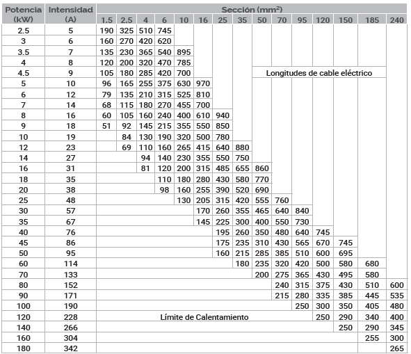 Cable diseñado para soportar la potencia e intensidad nominal de las bombas