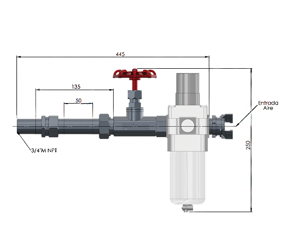 • Válvula de globo DN20 (3/4″ H) para control preciso de flujo de aire.
