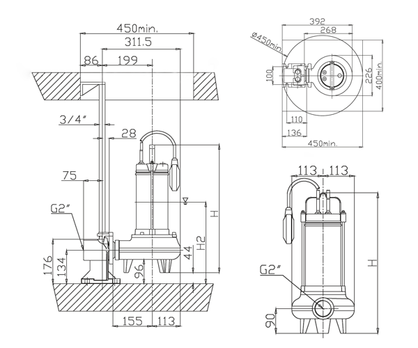 Bomba eléctrica sumergible con impulsor Vortex y reg. Versión nonf