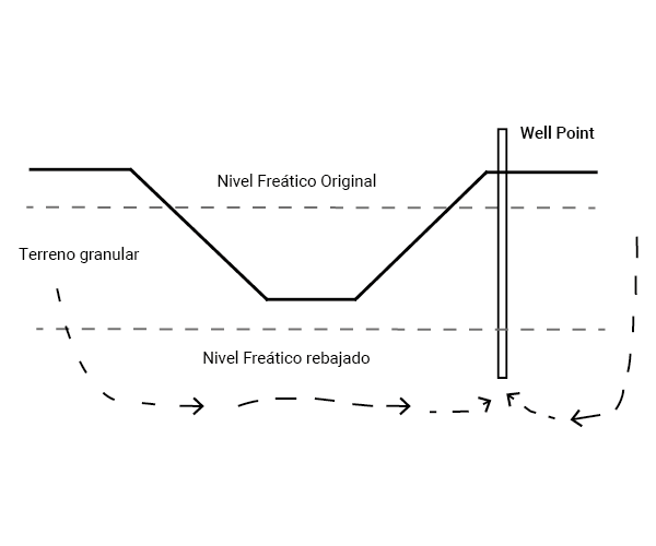 Control temporal del nivel freático en excavaciones con suelos inestables